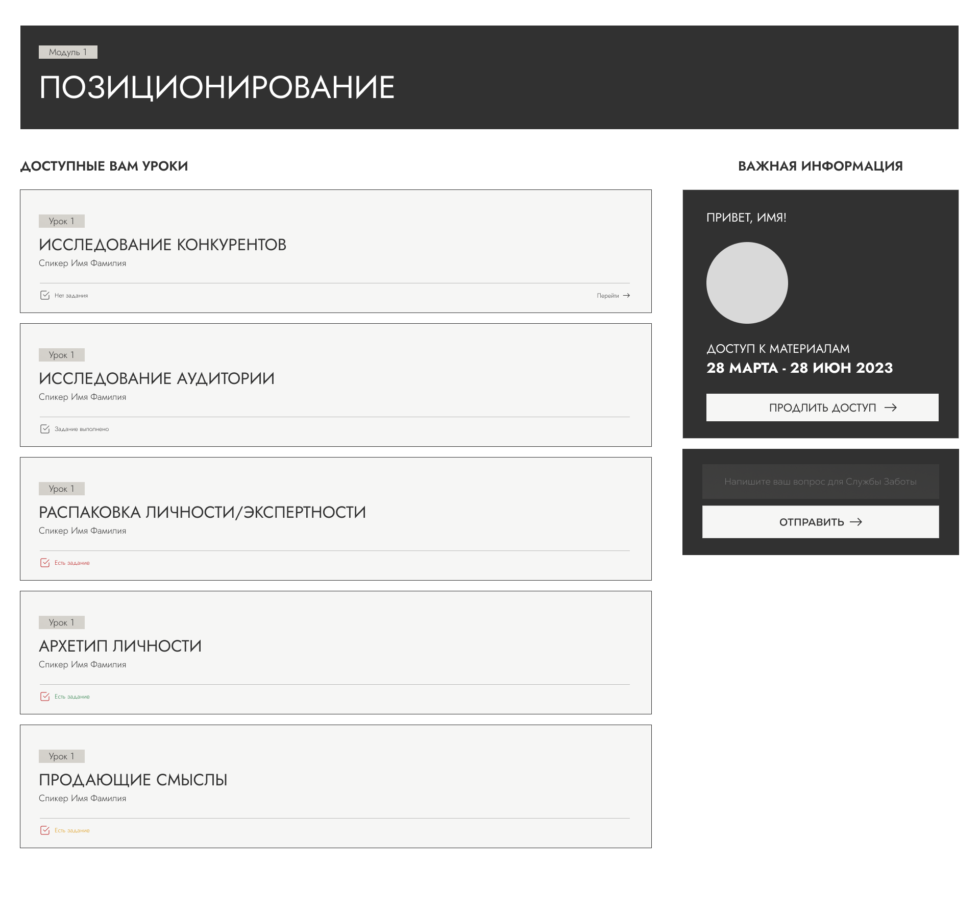 Главная страница личного кабинета на GetCourse