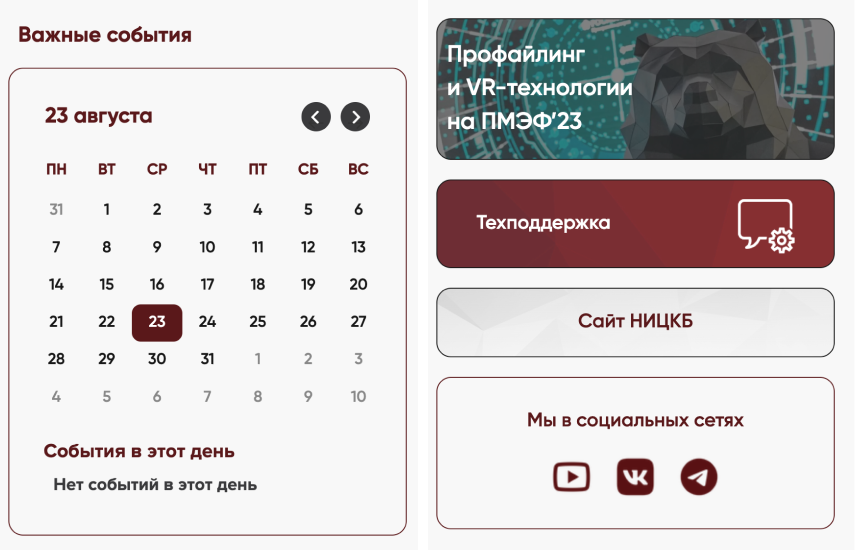 Добавлено календарь событий, баннер, кнопка перехода на сайт, соц сети, кнопка техподдержки
