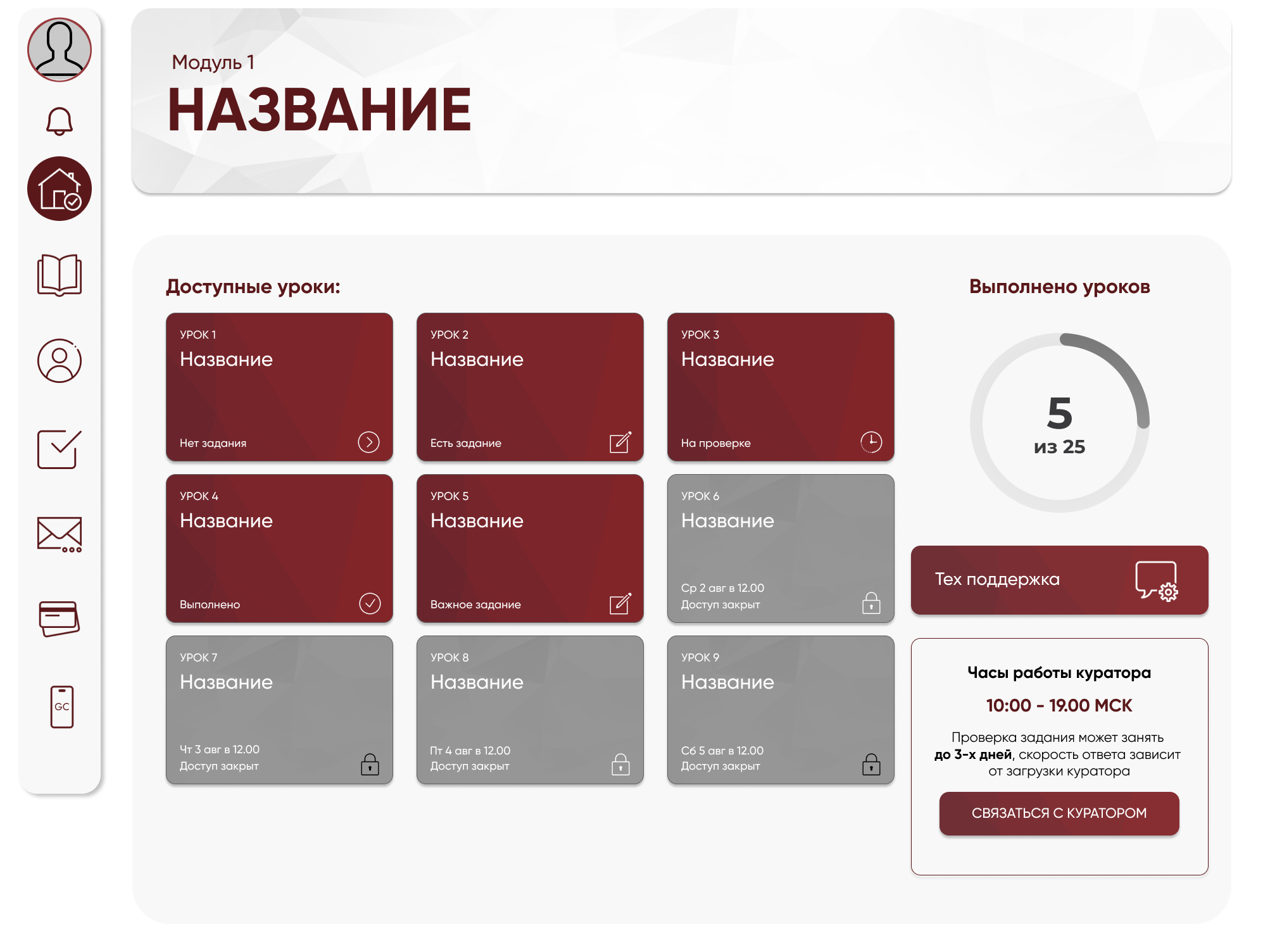 Список уроков (в целях конфиденциальности, названия уроков изменены)