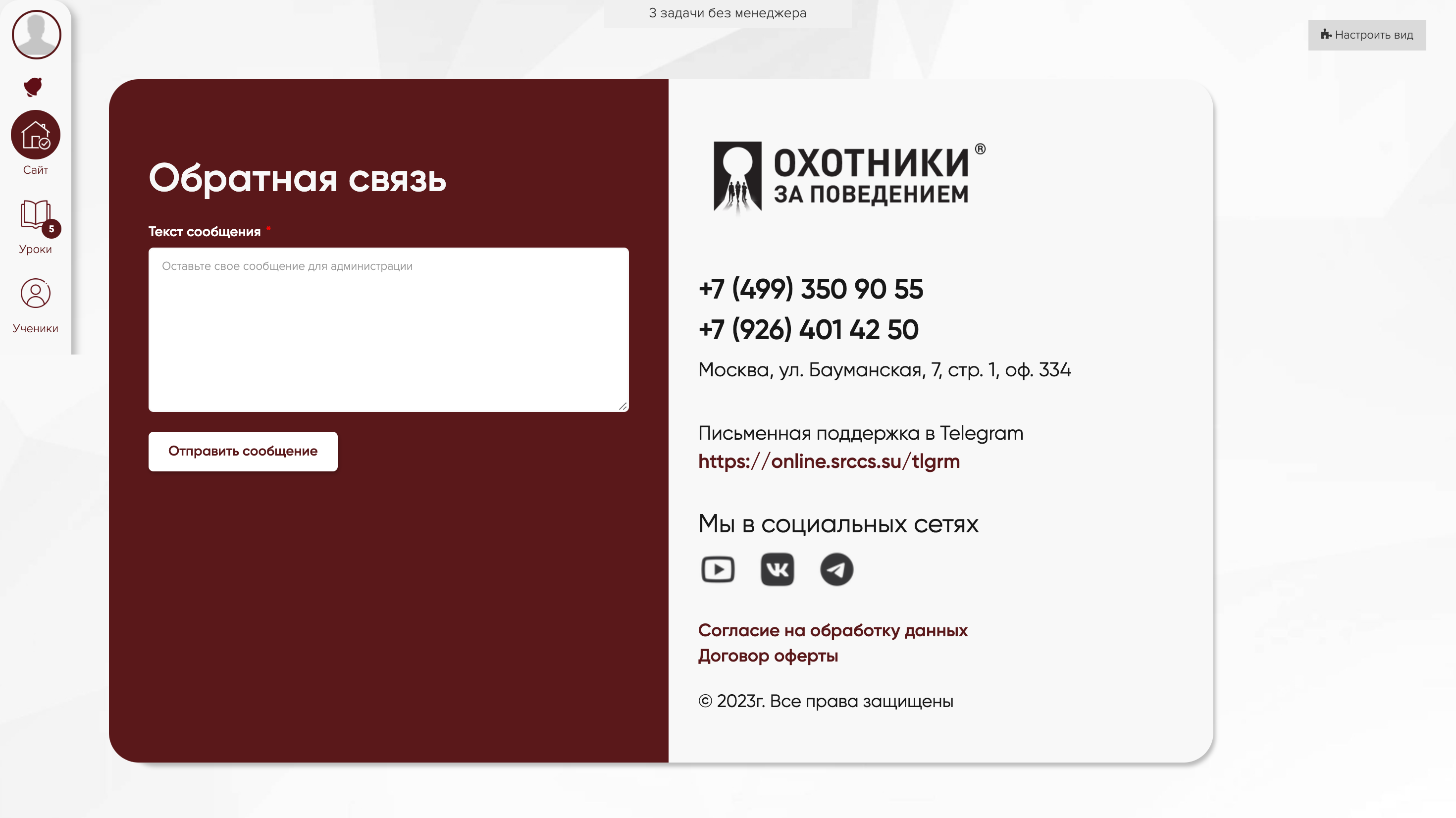 Главная страница личного кабинета на GetCourse