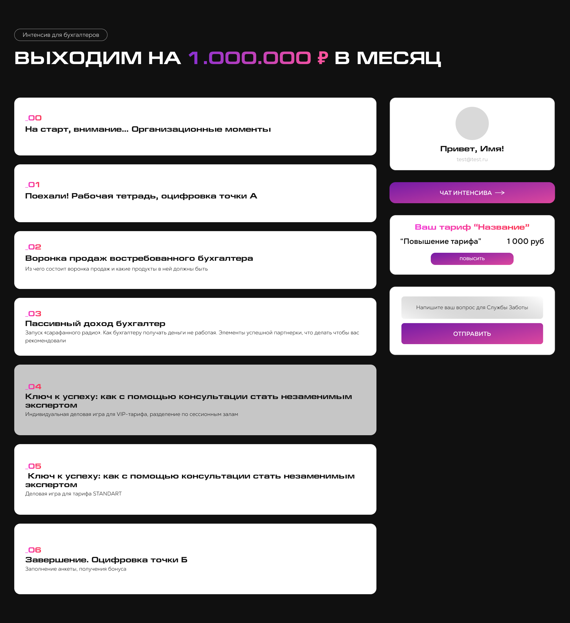 Главная страница личного кабинета на GetCourse